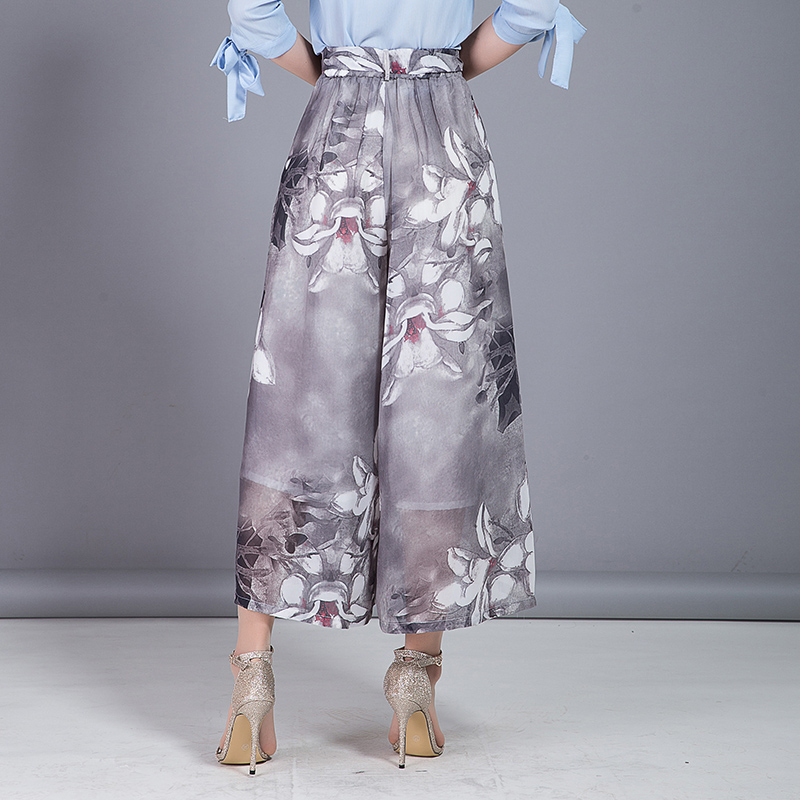 / 印花雪紡闊腿褲女夏季新款裙褲九分高腰薄款寬松大碼休閑褲裙