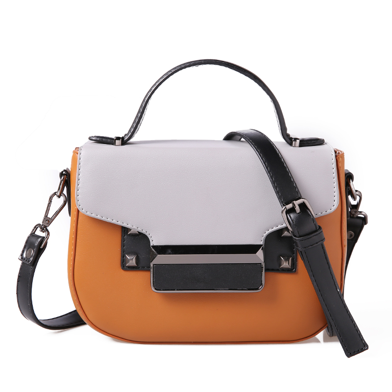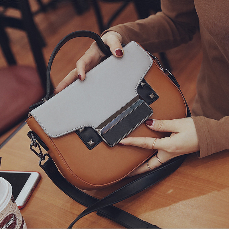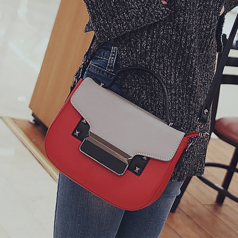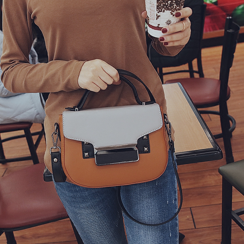手提包女小包包新款潮撞色復古小方包鉚釘迷你韓版單肩斜挎包