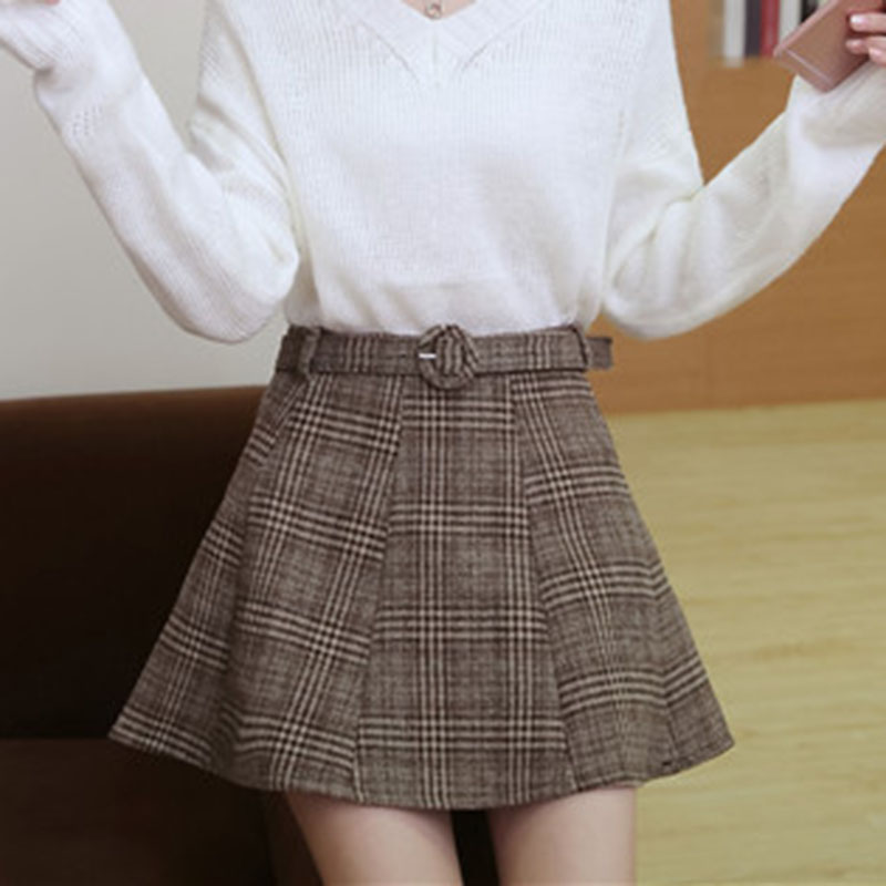 秋季新款2018女裝學院風毛呢格子半身裙學生氣質顯瘦高腰a字短裙