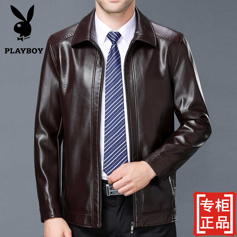 / 秋冬新款花花公子中年男士真皮夾克商務休閑男裝翻領綿羊皮衣外套
