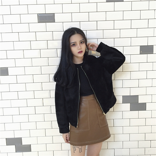 2018韓國新款復古百搭氣質時尚chic絲絨光澤棒球服長袖拉鏈外套女