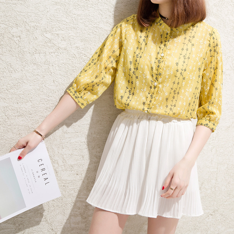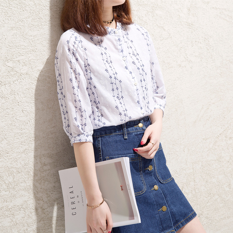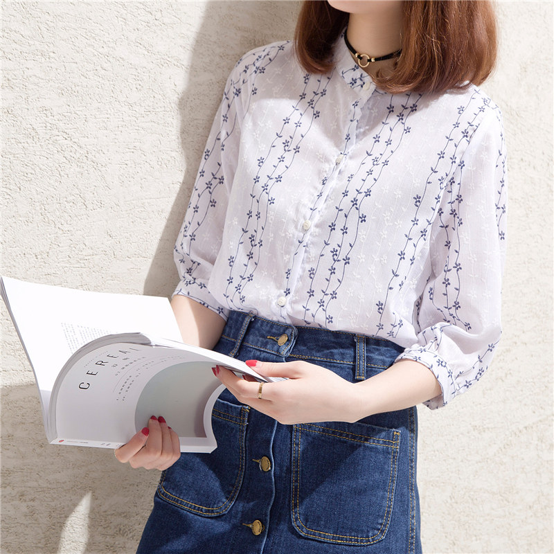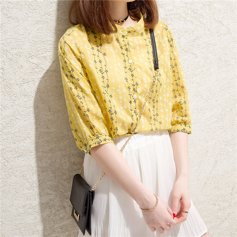 / 短袖襯衫女韓范寬松條紋小清新學生上衣夏裝新款女裝碎花襯衣