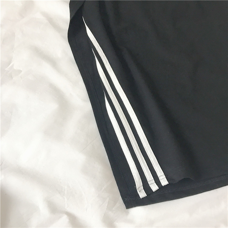 / 夏季女裝新款韓版顯瘦黑色高腰中長裙時尚條紋側開叉包臀半身裙潮