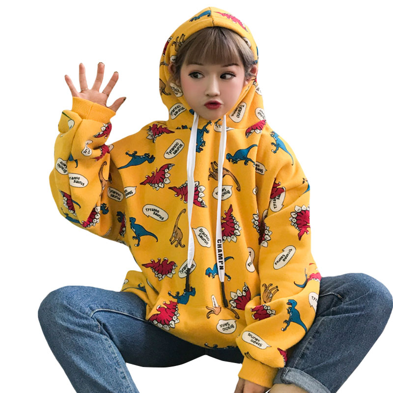 / 秋季女裝韓版原宿風小恐龍慵懶風寬松連帽pp home超火酷衛衣外套