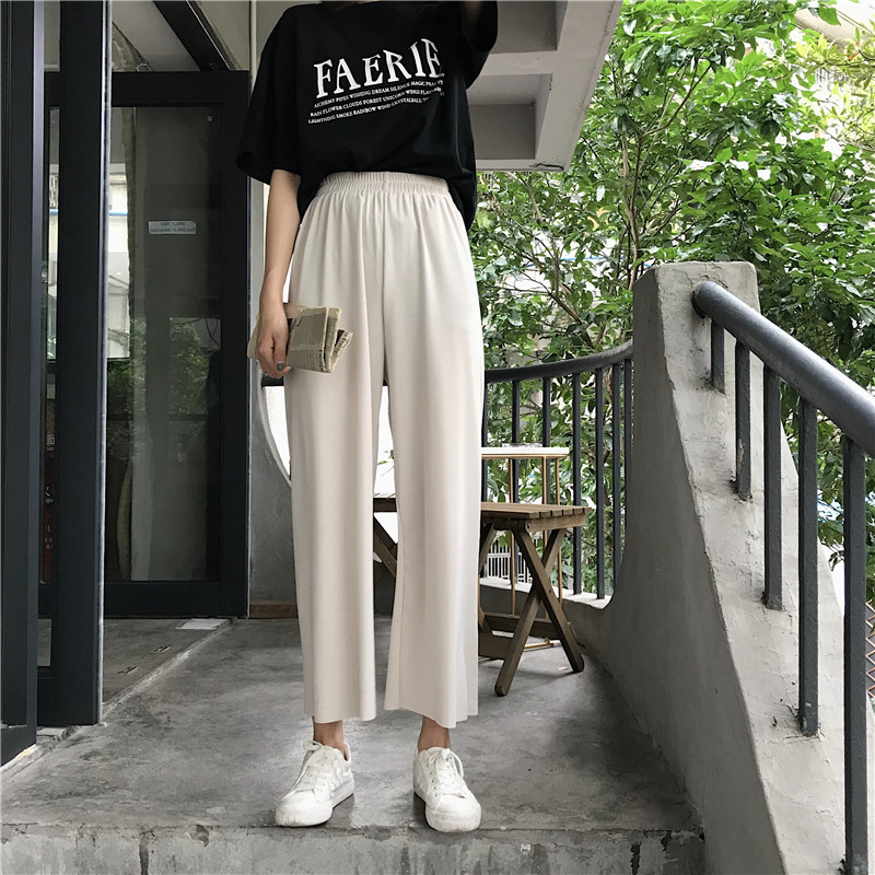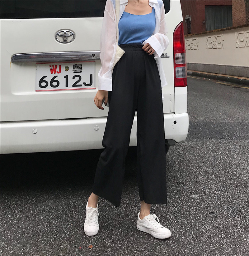 / 夏裝女裝韓版寬松松緊腰高腰闊腿褲薄款休閑褲九分褲直筒褲長褲潮