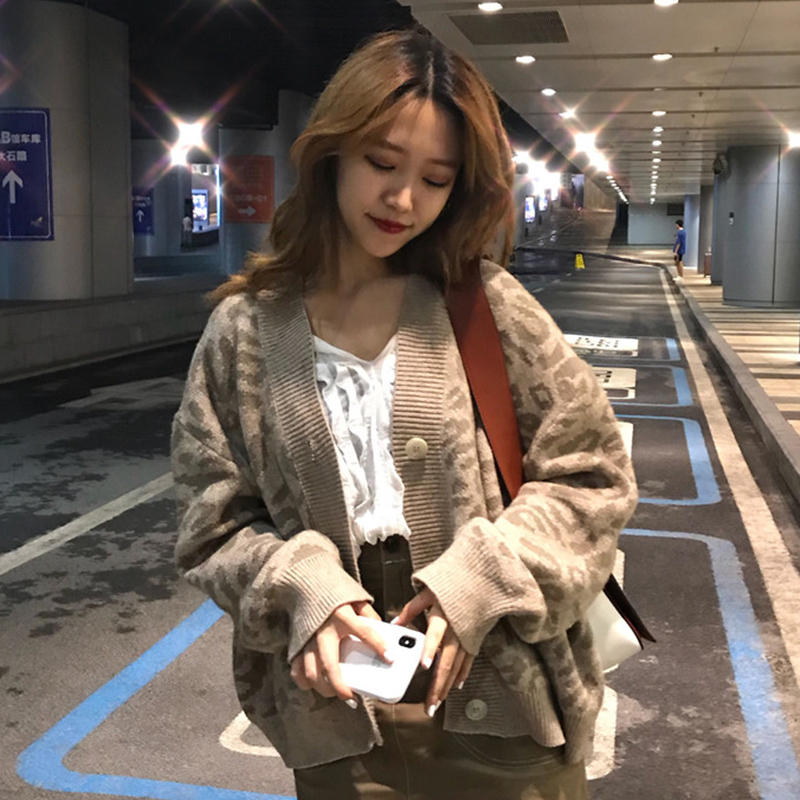 / 慵懶風毛衣秋裝女2018新款時尚豹紋長袖針織開衫學生寬松休閑外套