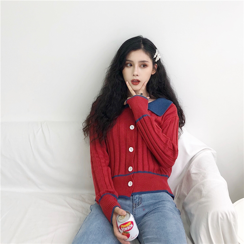 拼色翻領+豎條紋設計増加亮點細節