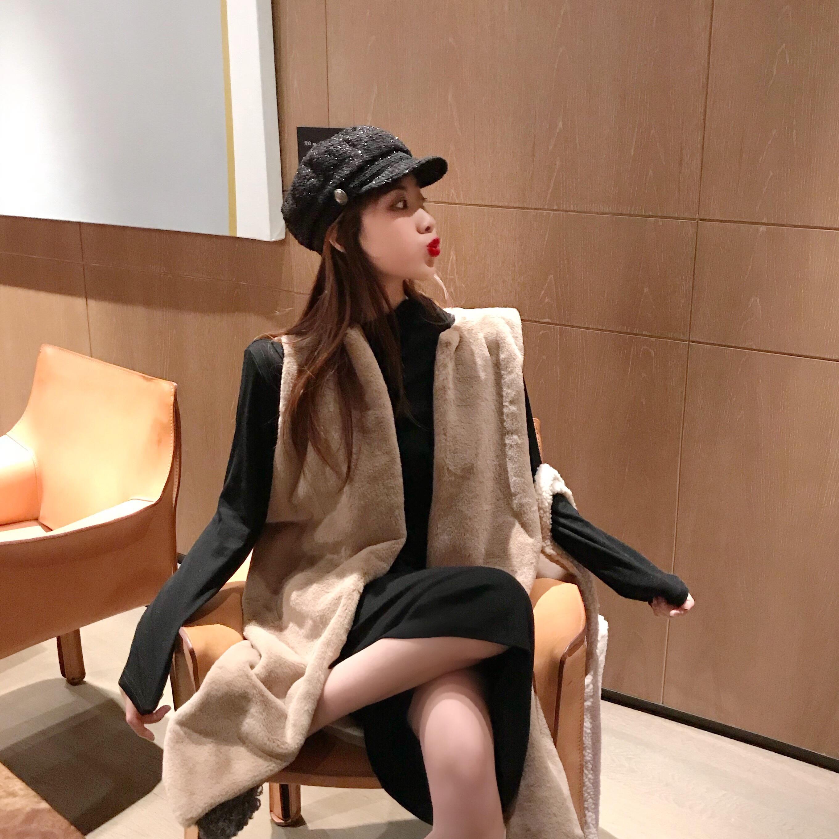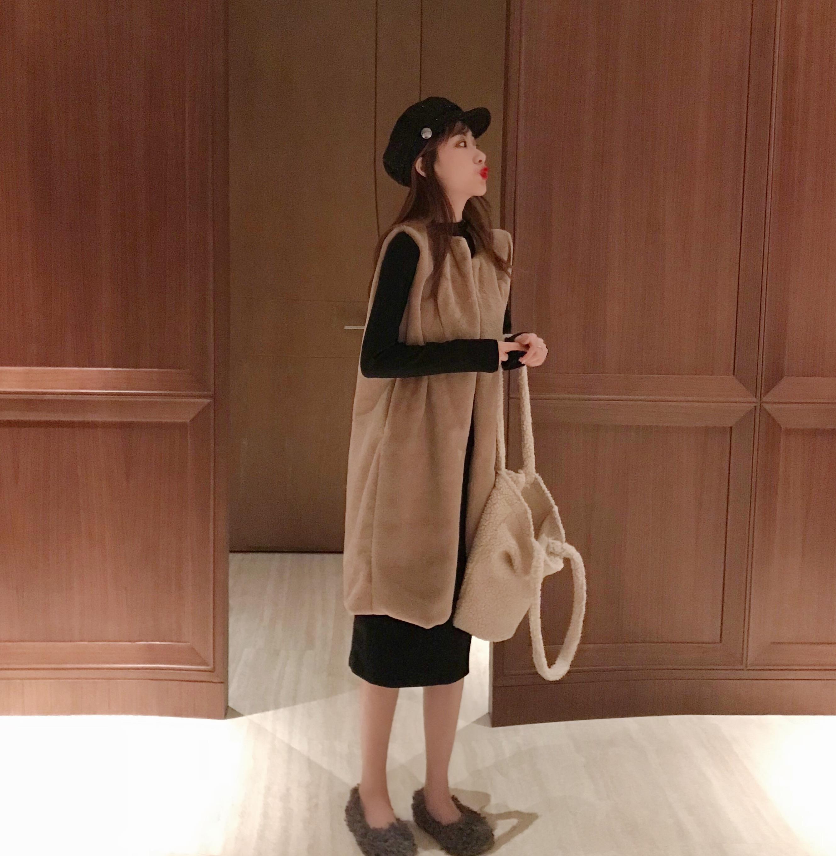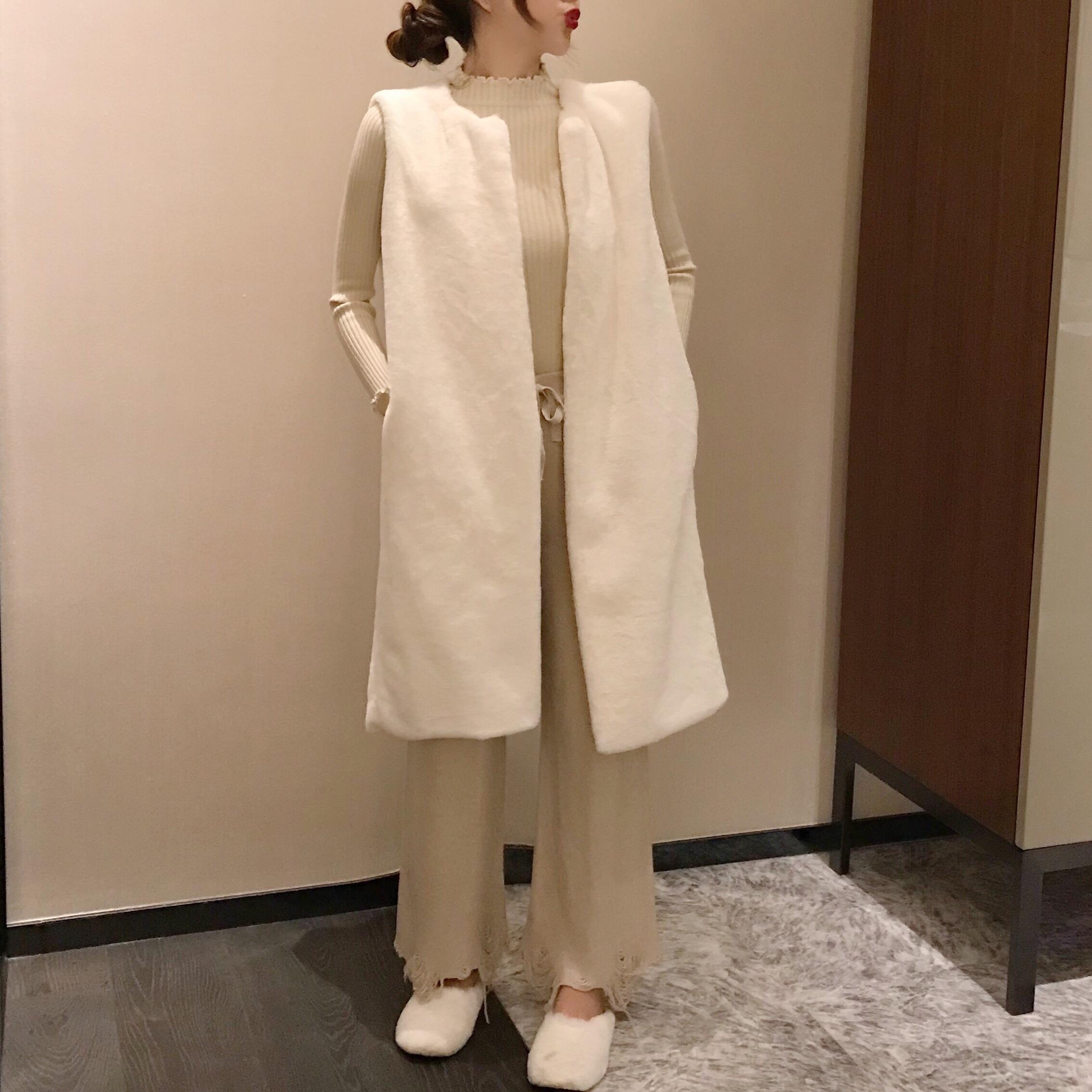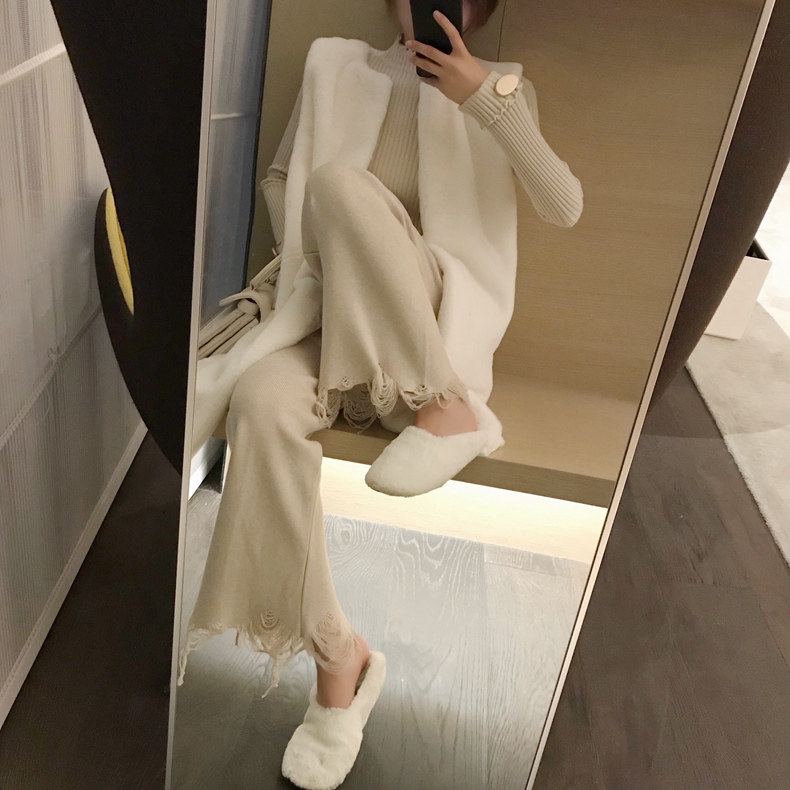 / 新款韓版無袖開衫中長毛絨馬甲針織闊腿褲針織打底衫時尚套裝女潮