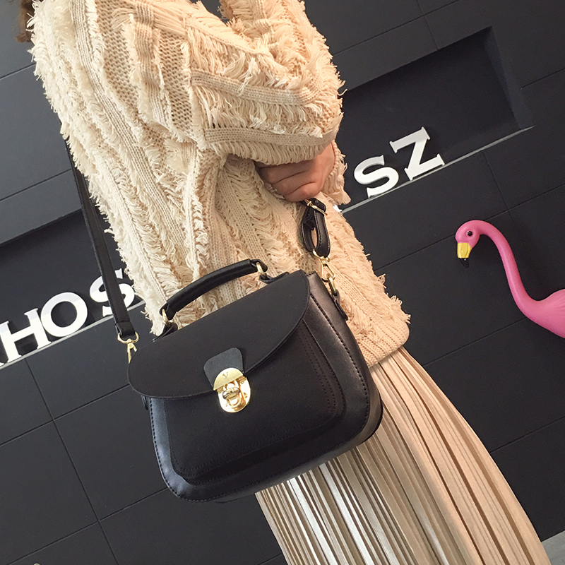 新款韓版單肩斜挎包時尚迷你小包包復古鎖扣磨砂手提包女小包