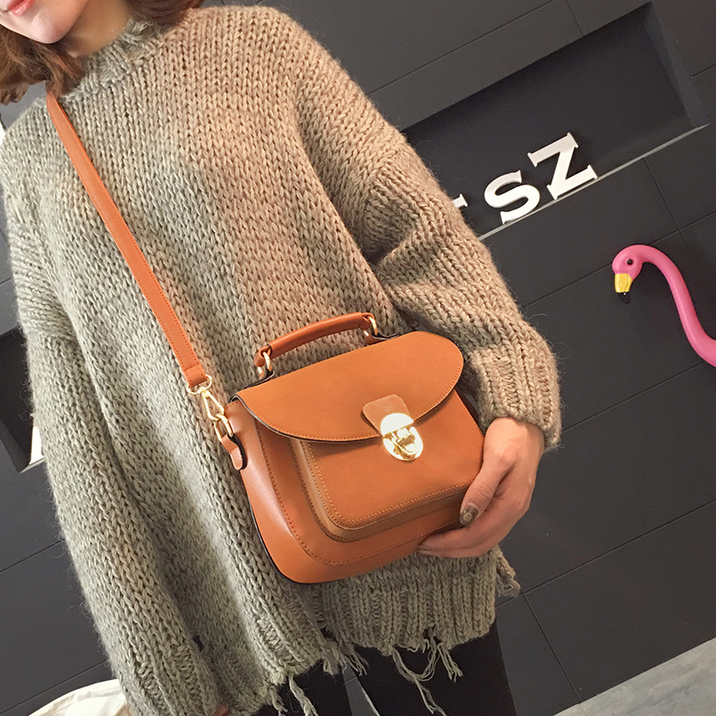 / 新款韓版單肩斜挎包時尚迷你小包包復古鎖扣磨砂手提包女小包