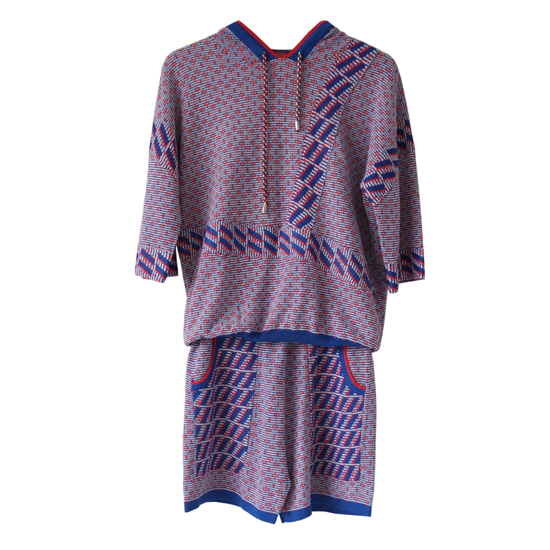 新款2018氣質運動短袖套頭短褲熱褲連帽休閑時尚針織兩件套裝女裝