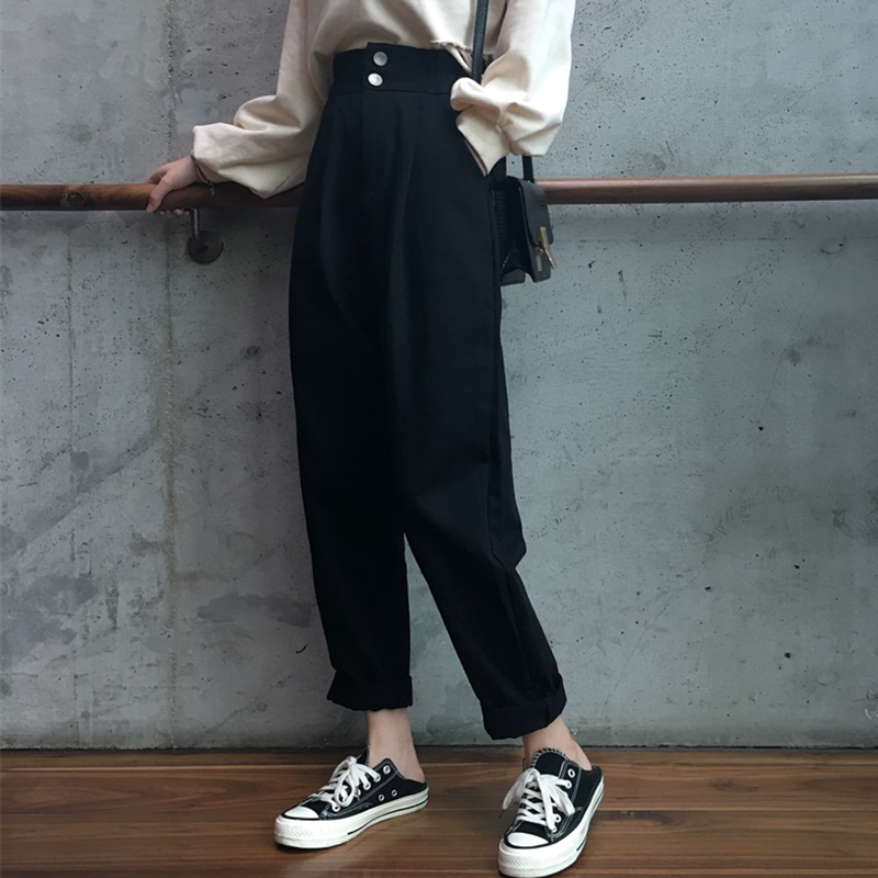 休閑套裝女秋季新款韓版寬松V領破洞短款長袖衛衣高腰哈倫長褲子