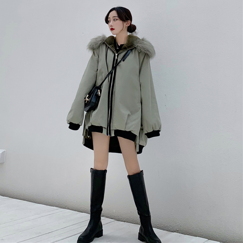 冬季女裝2018新款學生時尚大毛領連帽棉衣韓版寬松中長款棉服外套
