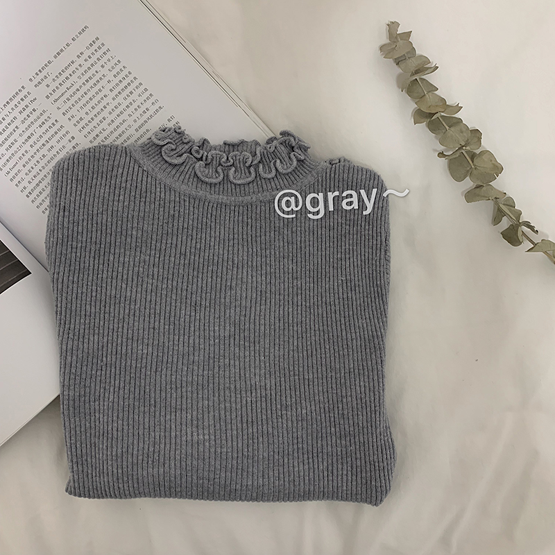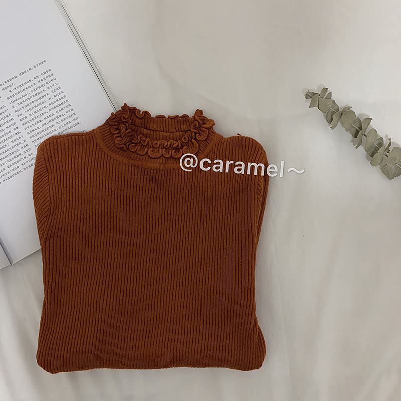 / 木耳花邊半高領針織衫秋冬女裝2018新款韓版氣質修身顯瘦打底毛衣