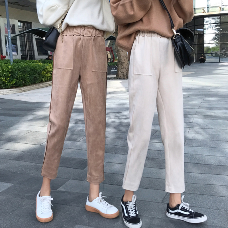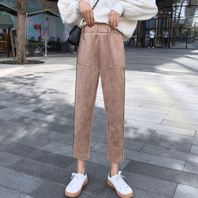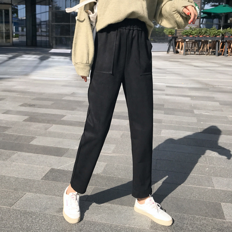 寬松直筒哈倫休閑褲子女秋冬裝新款韓版學院風黑色高腰顯瘦九分褲