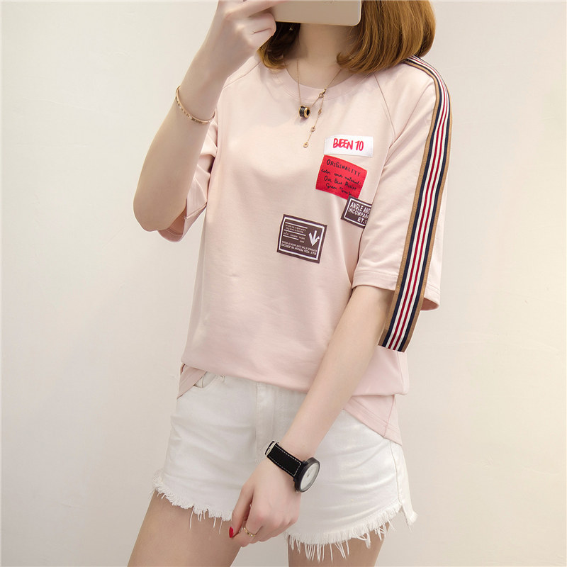 短袖上衣女夏新款白色t恤女中長袖寬松韓版打底體恤衫百搭潮