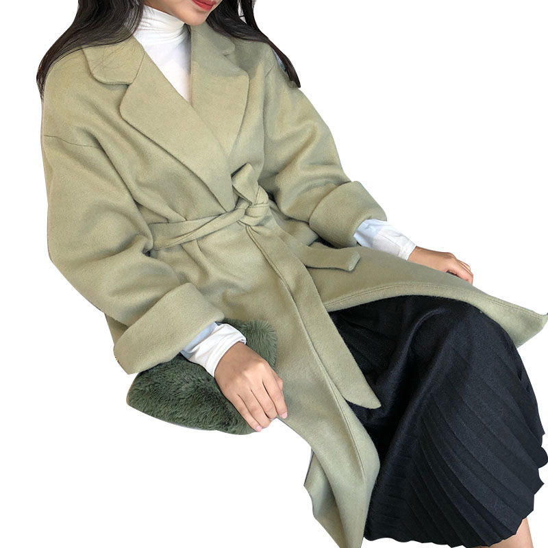外套女春秋2018新款時尚chic簡約寬松顯瘦中長款呢子外套女配腰帶