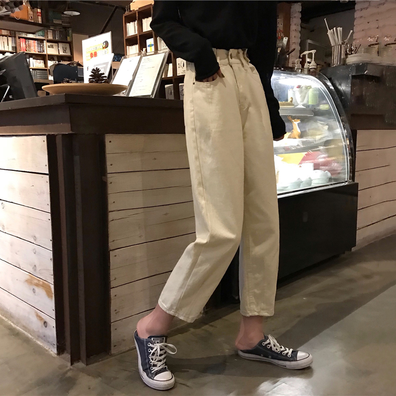 / 黑色牛仔褲女秋裝2018新款韓版寬松蘿卜哈倫褲子學生高腰直筒長褲