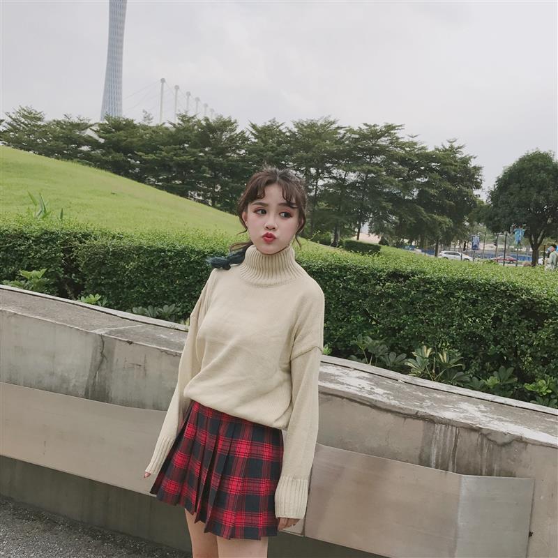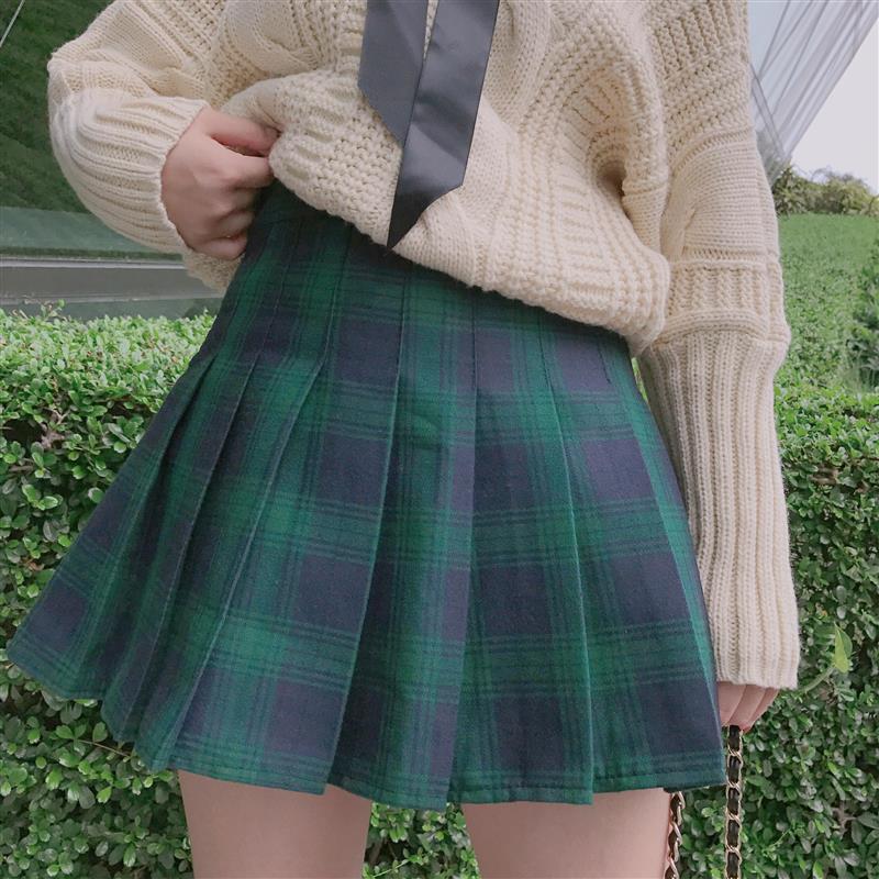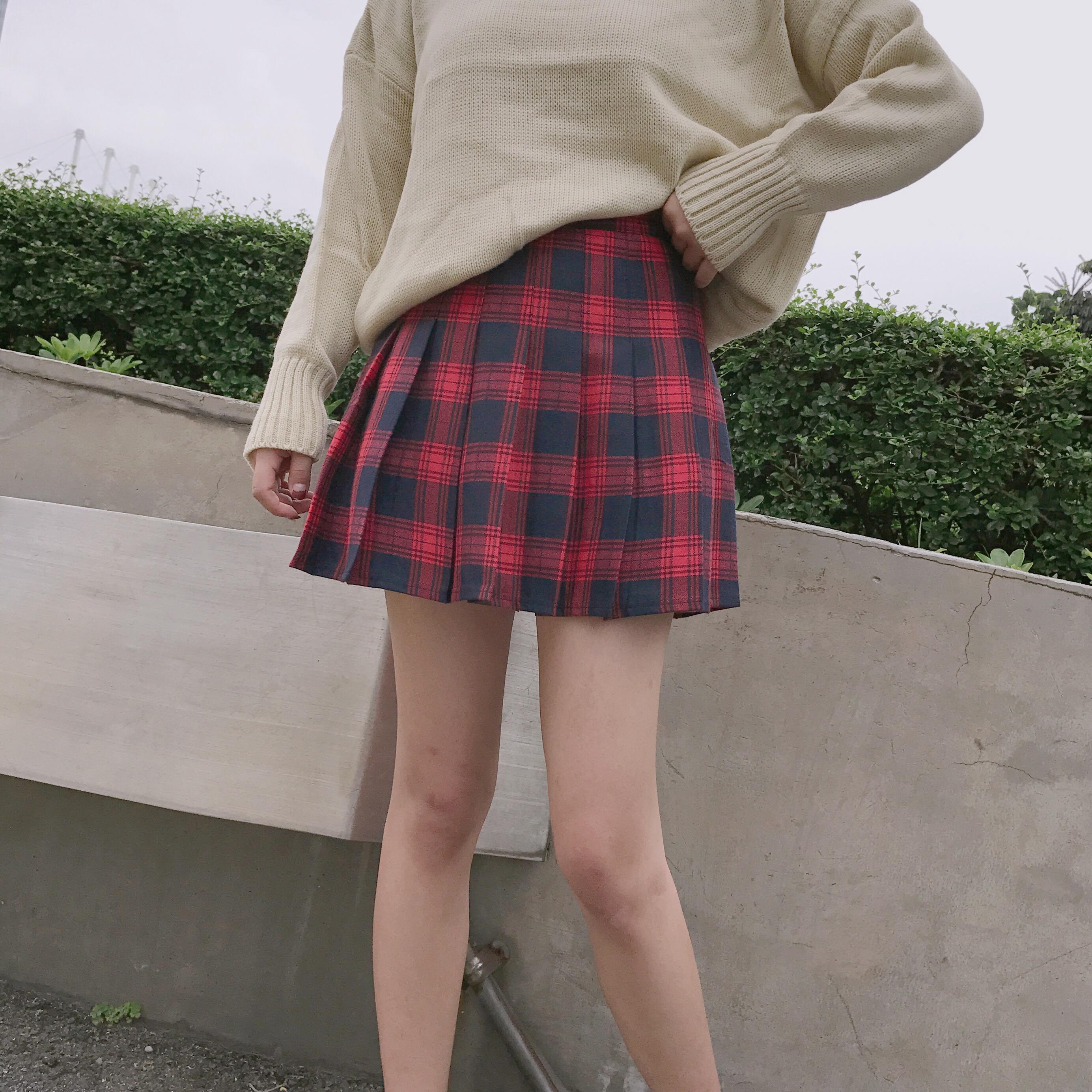 / 秋裝女裝韓版百搭小清新高腰格子百褶裙學生顯瘦半身裙A字裙短裙