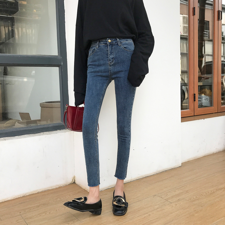 2018新款韓版百搭高腰褲子時尚百搭秋季修身顯瘦鉛筆褲牛仔褲潮女