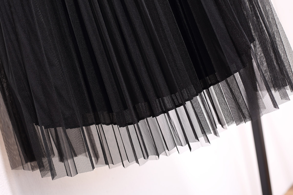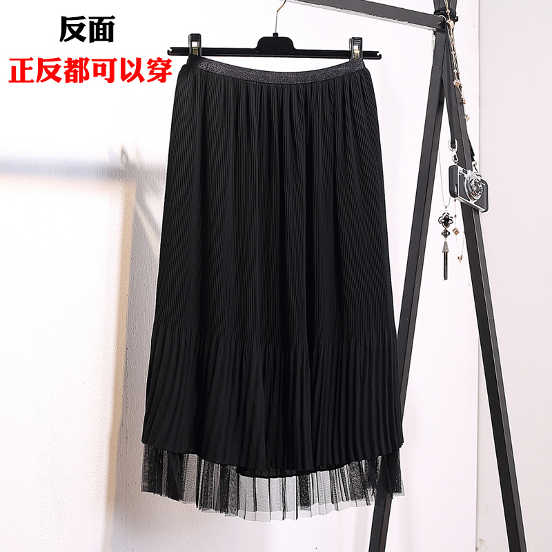 / 中長款網紗裙百褶裙春夏季新款韓版女高腰百搭雪紡半身長裙子