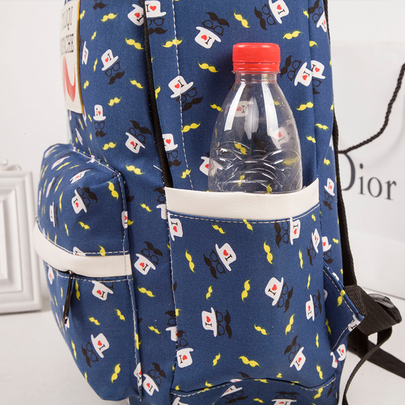 小清新帆布雙肩書包 韓版小胡子學生背包旅行包休閑潮學院風女包