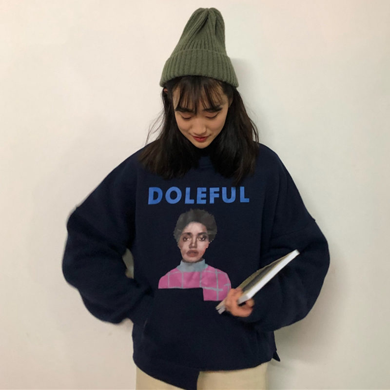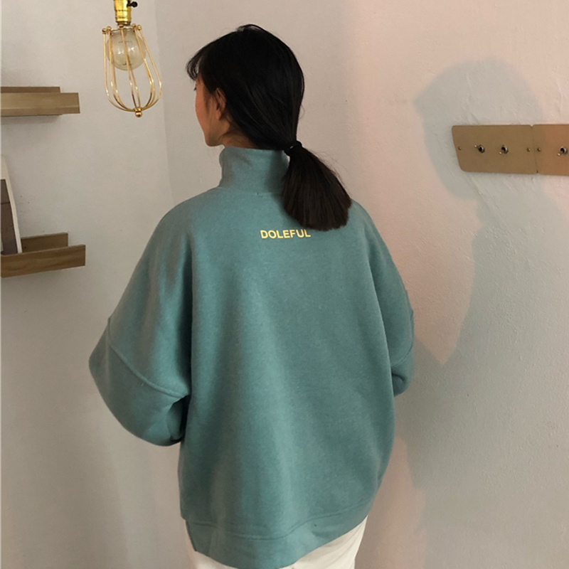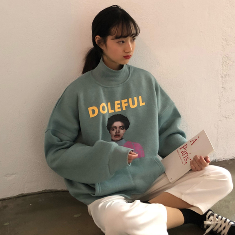 / 秋冬女裝新款字母印花半高領加絨衛衣學生不規則寬松長袖外套上衣