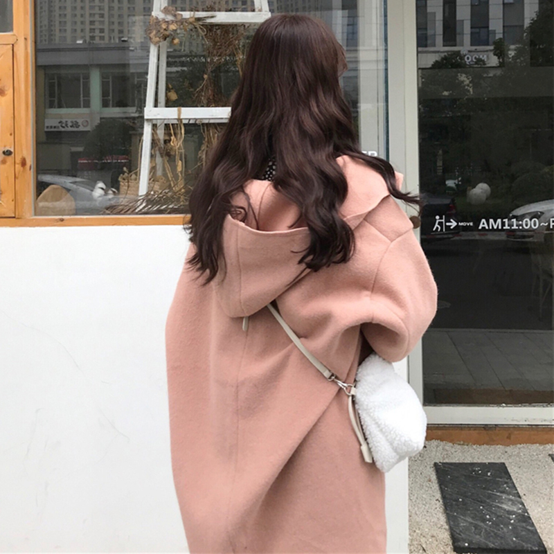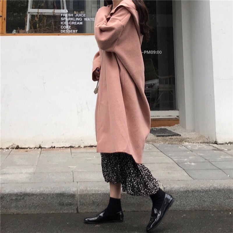 / 御姐套裝女秋冬新款寬松連帽風衣毛呢外套長款波點長袖桔梗連衣裙