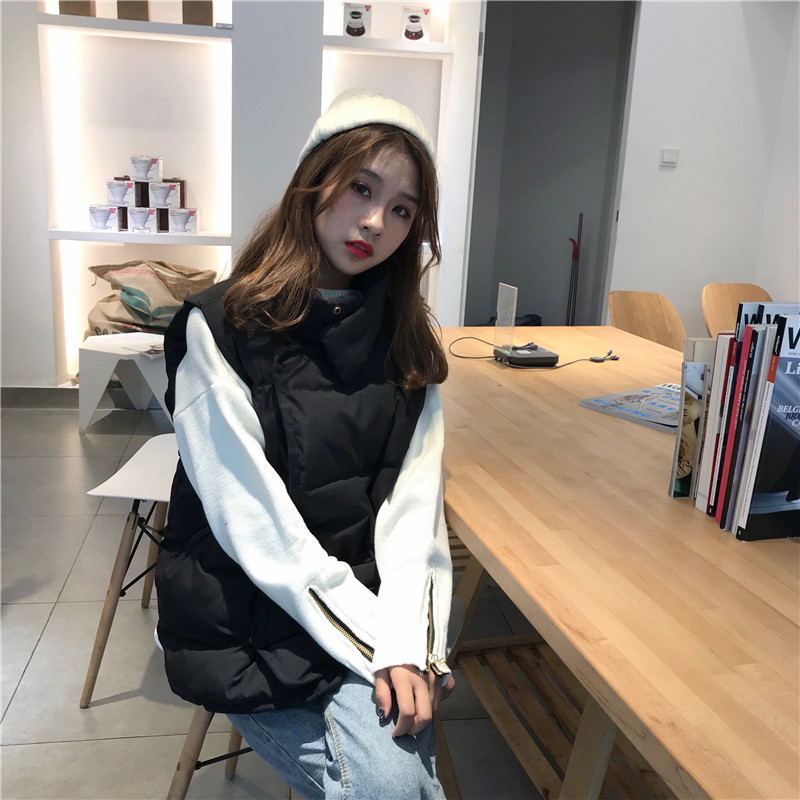 復古溫柔棉馬甲外套冬季女2018新款百搭寬松立領oversize棉衣外套