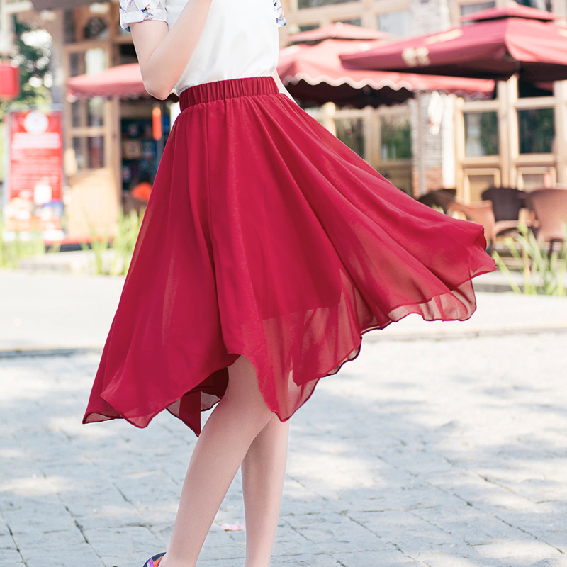 / 雪紡中長款碎花半身裙女百搭夏季新款韓版不規則仙女裙長裙子