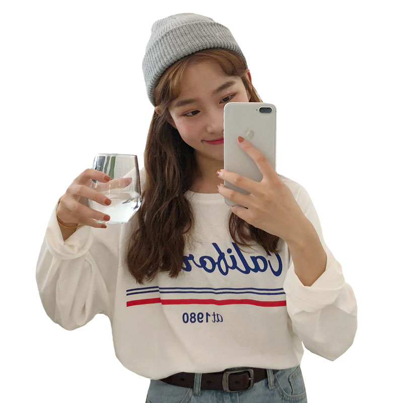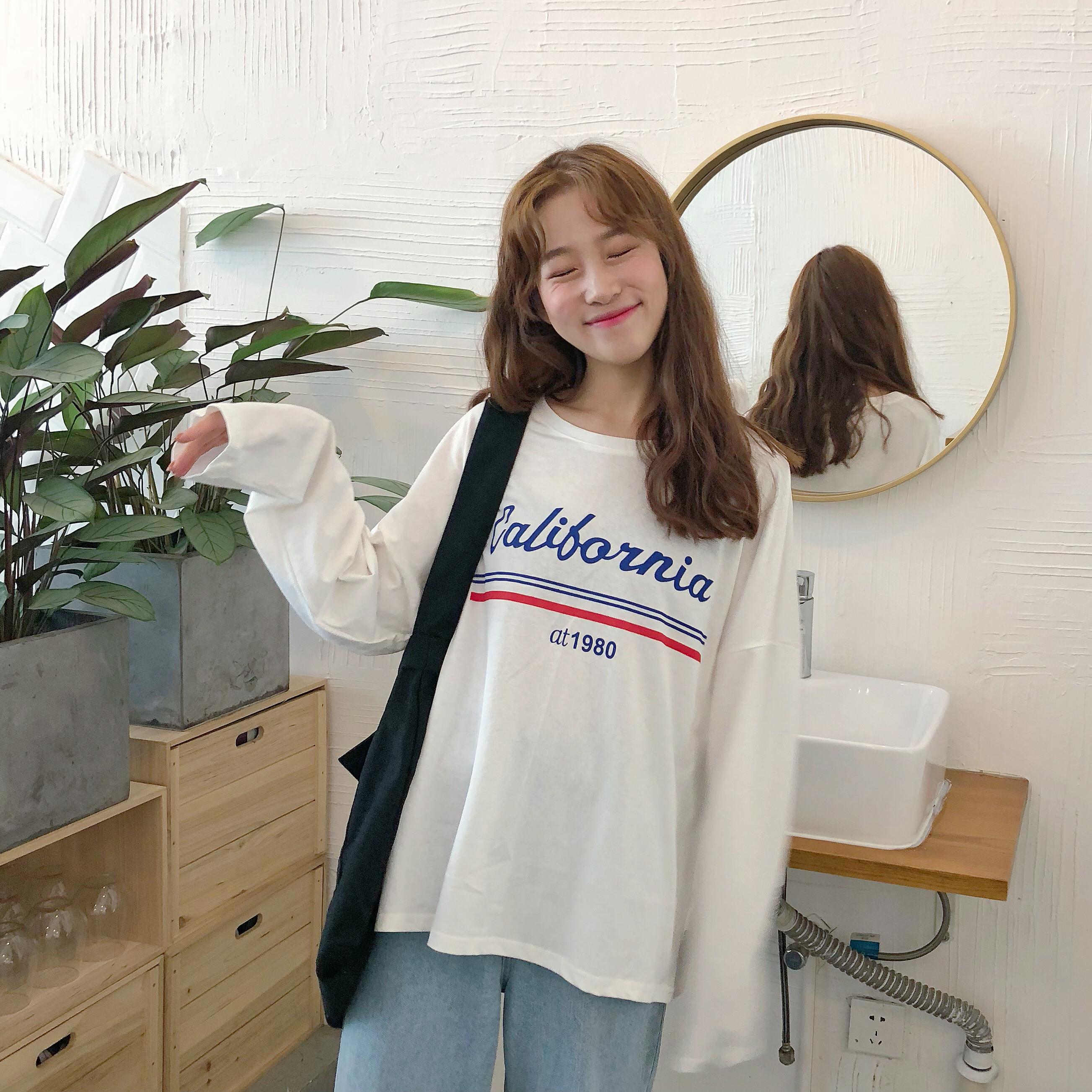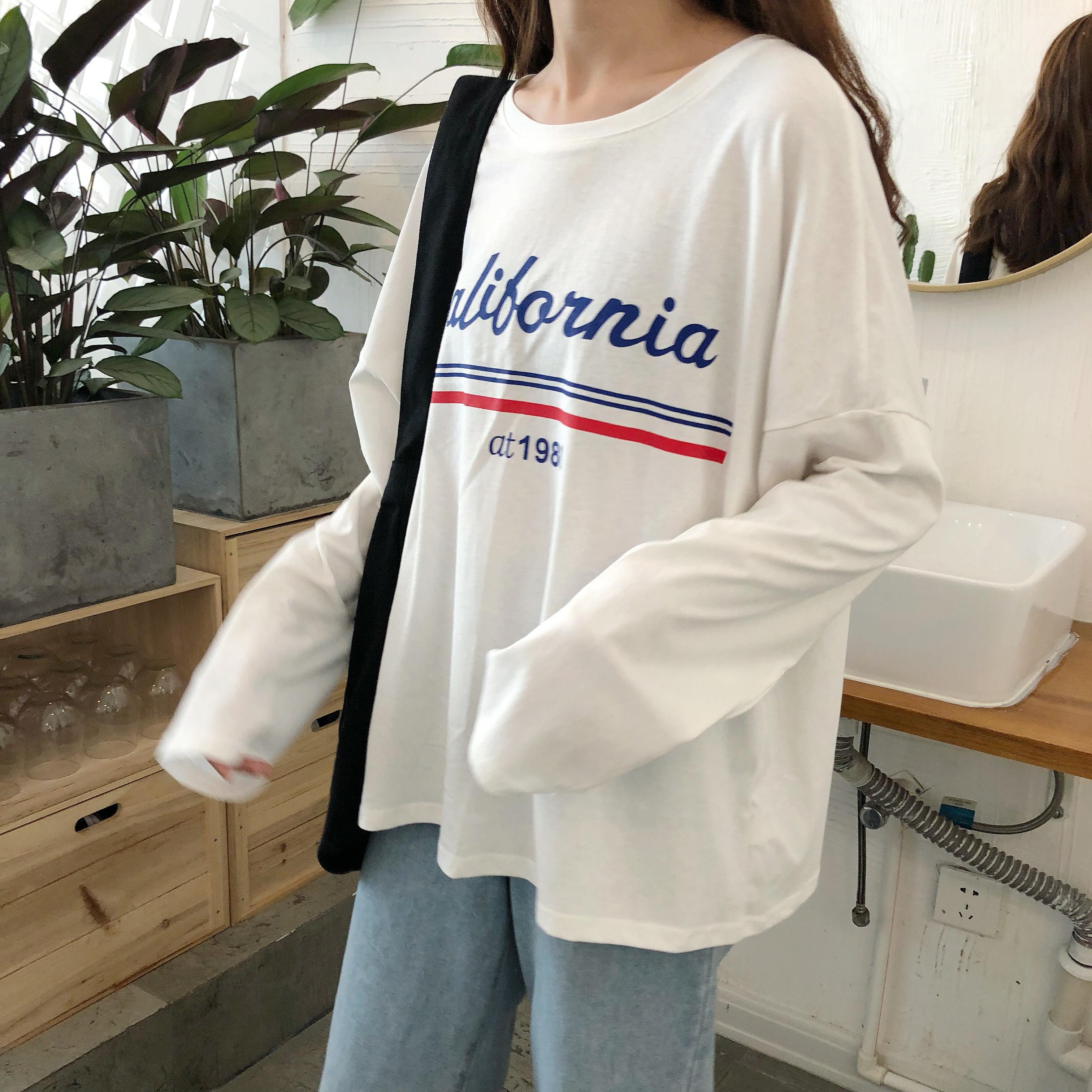 秋季女裝韓版寬松百搭顯瘦字母印花長袖T恤學生休閑圓領體恤上衣