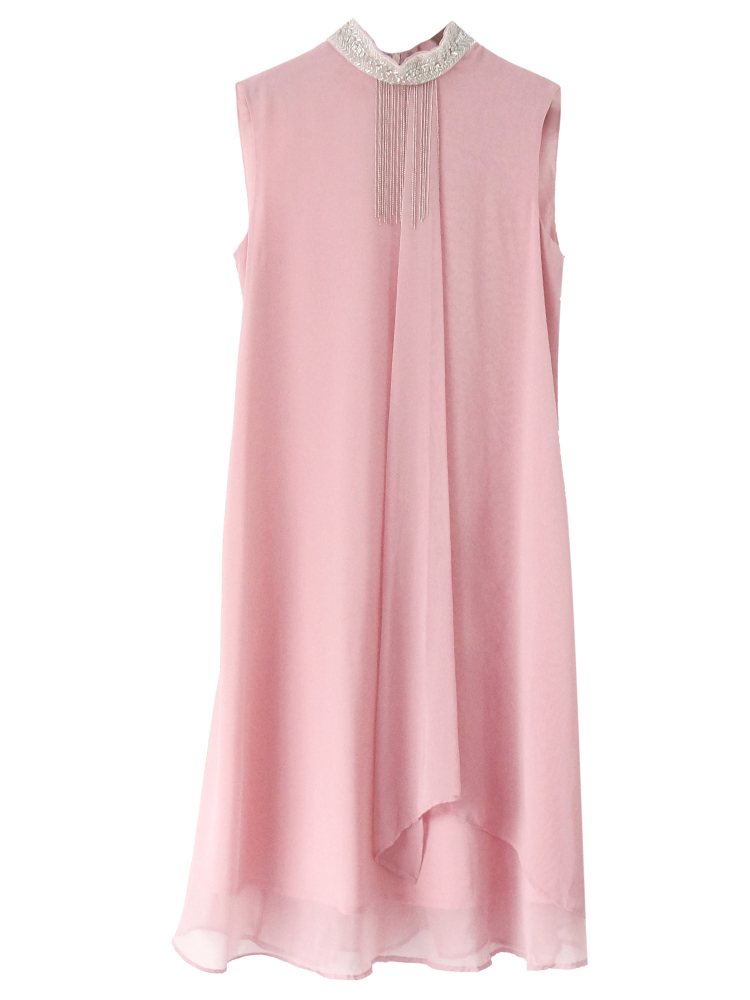 / S秀韓版名媛氣質2018夏季新款流蘇波浪無袖連衣裙純色不規則裙子