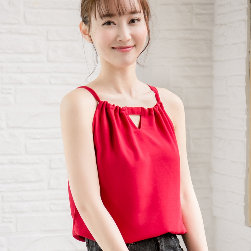 / 春夏新品百搭大碼顯瘦露肩雙層雪紡背心女打底小吊帶上衣