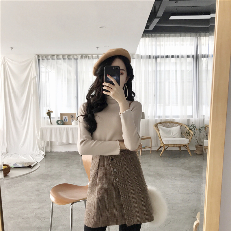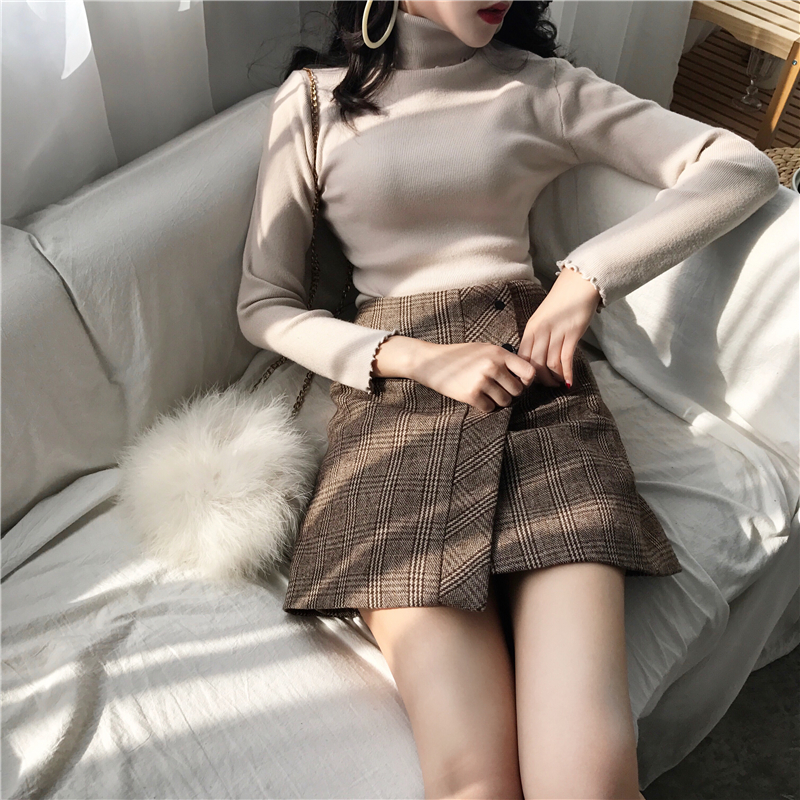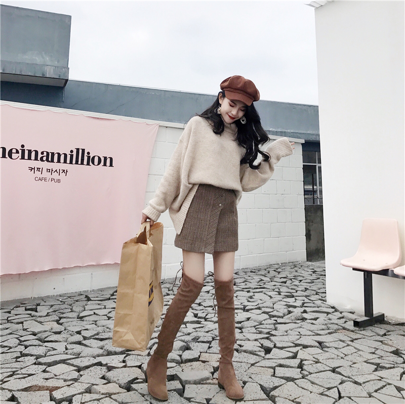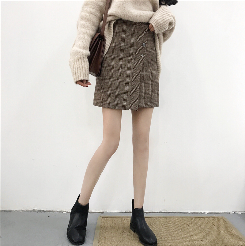 / 厚實英倫奶茶系格紋半身裙秋女2018新款時尚韓版氣質百搭修身短裙
