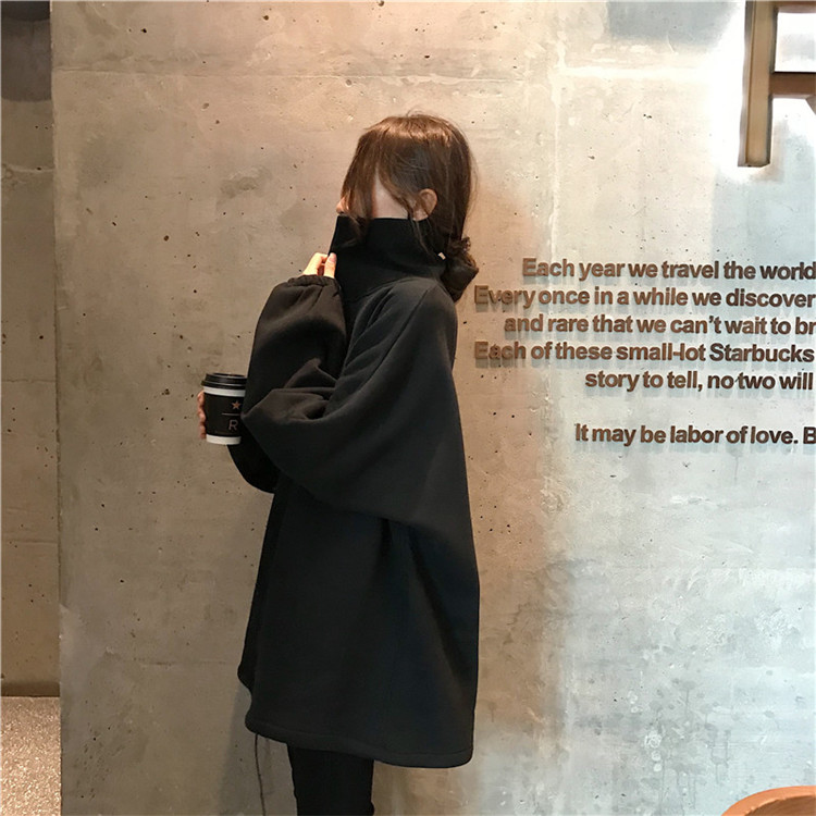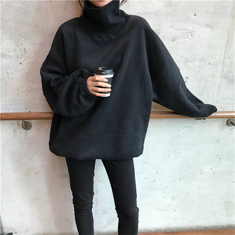 秋冬復古韓版慵懶風寬松高領加絨加厚保暖長袖套頭衛衣女2018新款