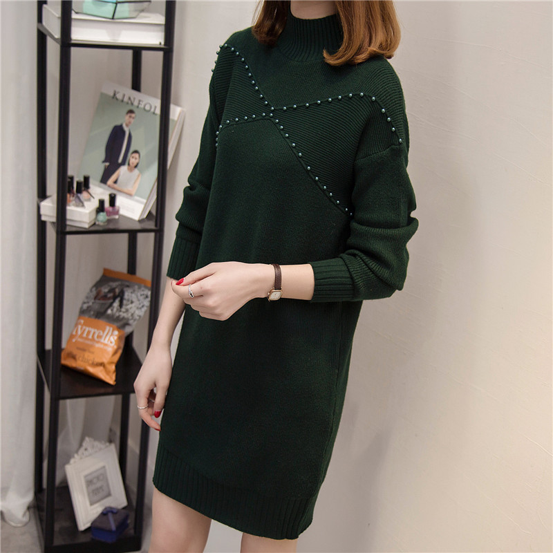 毛衣女秋冬套頭韓版高領中長款針織衫開叉毛衣裙毛線衣連衣裙