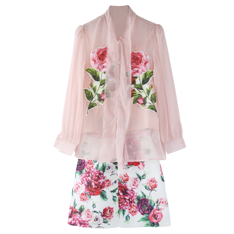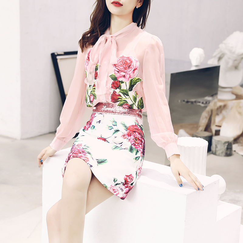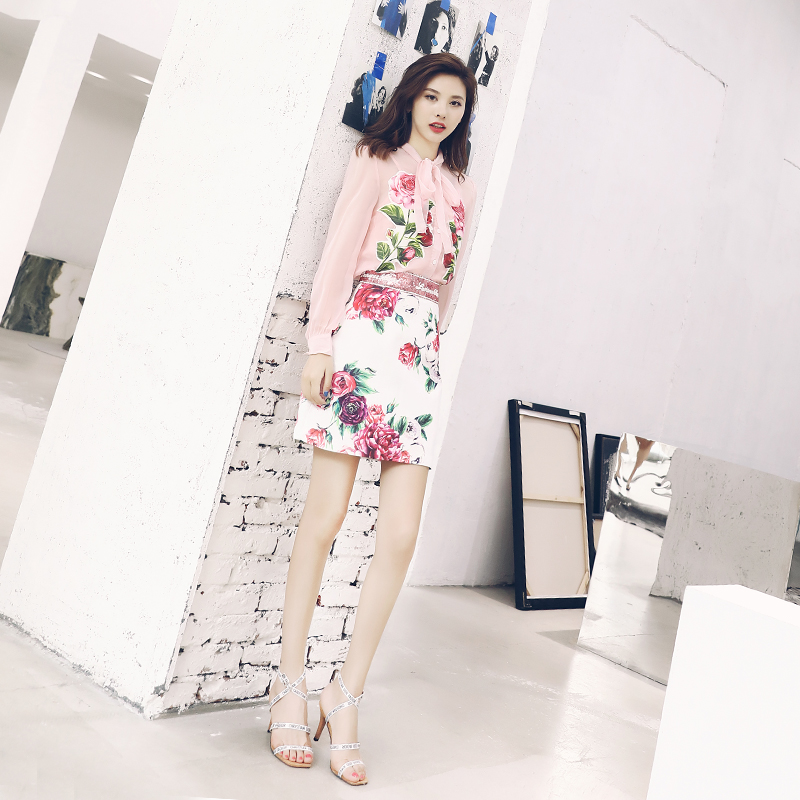 溫柔風仙女套裝印花蝴蝶結綁帶襯衫上衣吊帶復古花朵半身裙三件套
