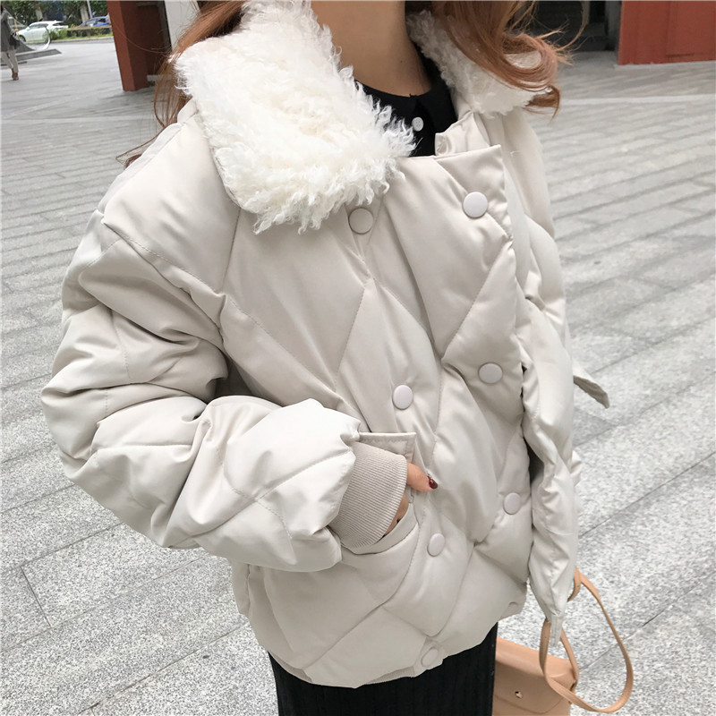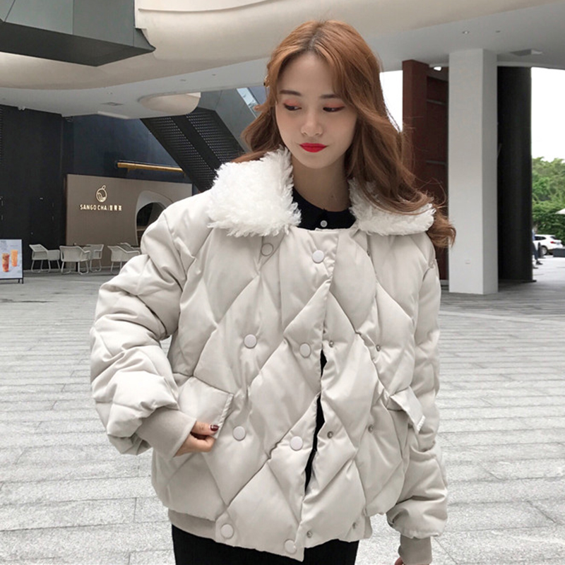 / 冬季2018新款韓版保暖棉服羊羔毛領短外套學生雙排扣休閑面包服女