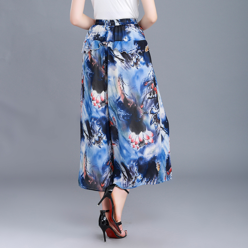 / 春夏新款高腰雪紡九分闊腿褲百褶裙褲大碼休閑褲裙七分褲子女