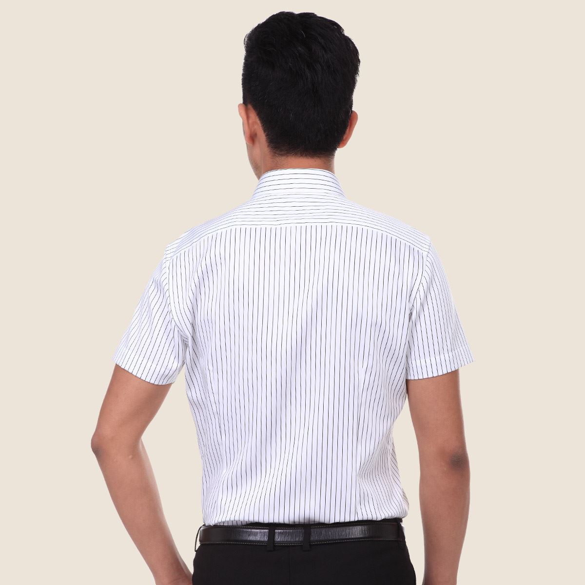 / 深海夏裝新款男士短袖襯衫男韓版修身絲光棉條紋黑白商務休閑