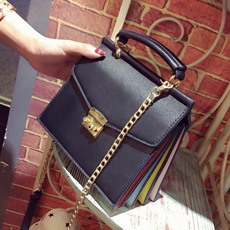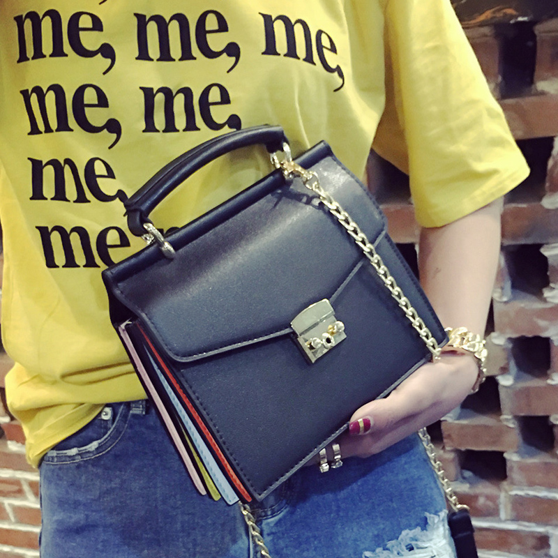 包包女新款潮撞色小方包鏈條單肩女包小包韓版百搭斜挎手提包