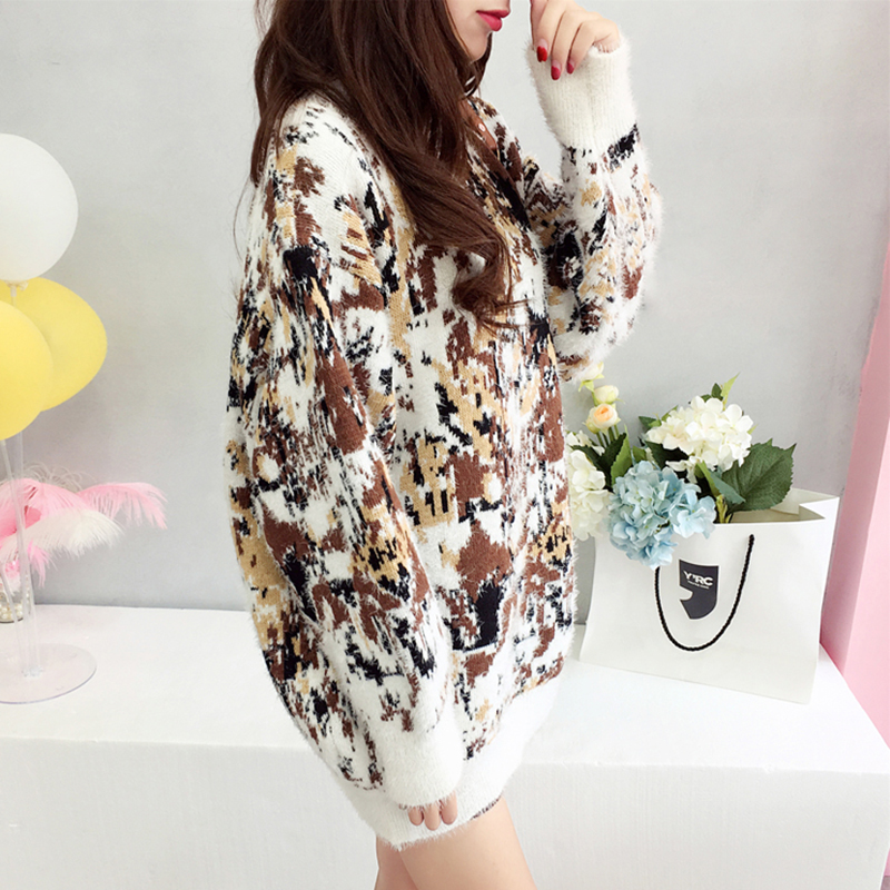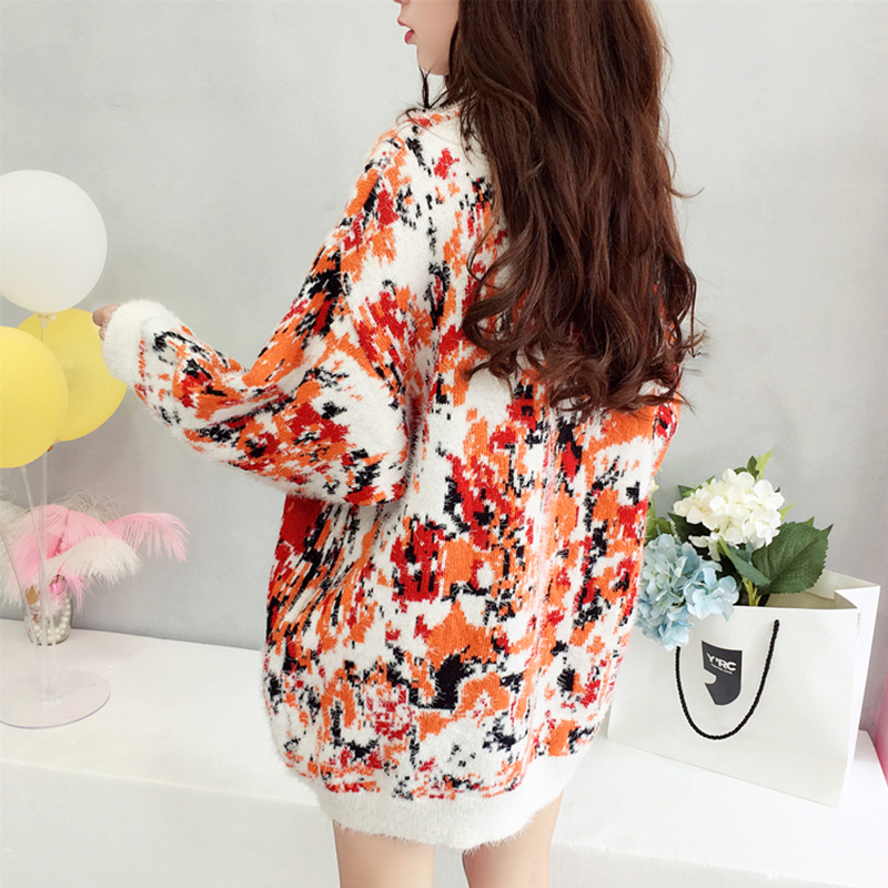 慵懶寬松毛衣女秋冬裝2018新款韓版時尚拼色針織外套學生圓領上衣