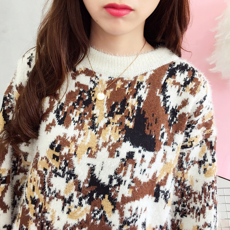 / 慵懶寬松毛衣女秋冬裝2018新款韓版時尚拼色針織外套學生圓領上衣