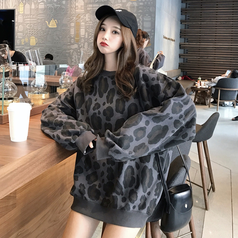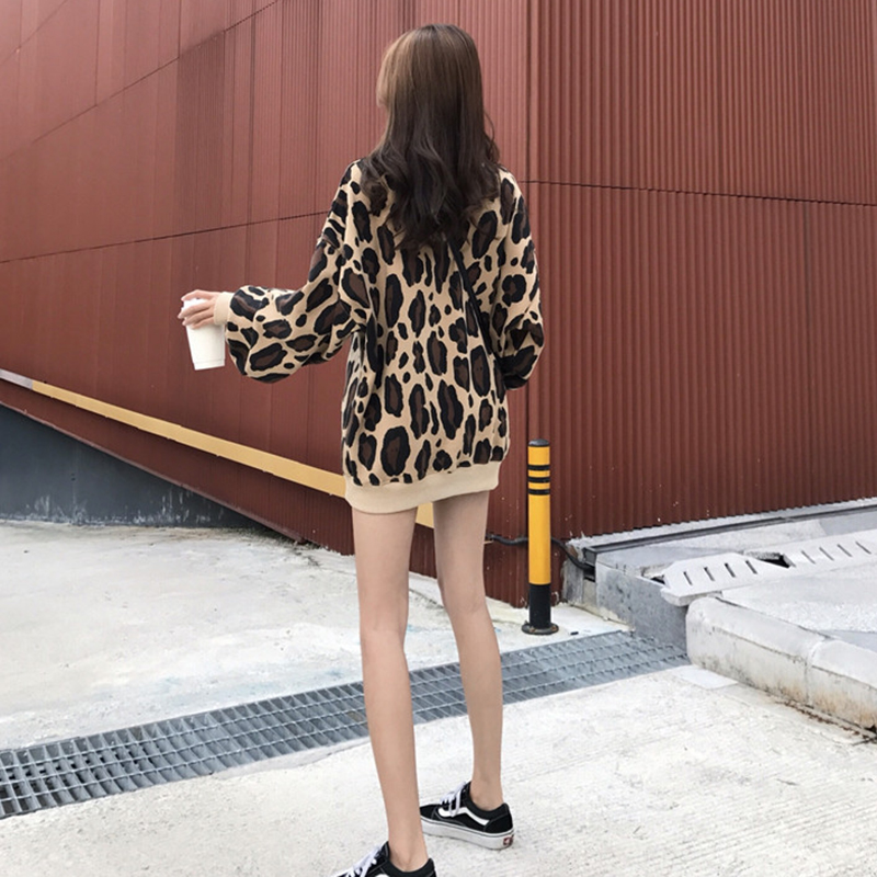 / 慵懶風帥氣豹紋衛衣秋裝女2018新款復古寬松燈籠袖中長款上衣外套