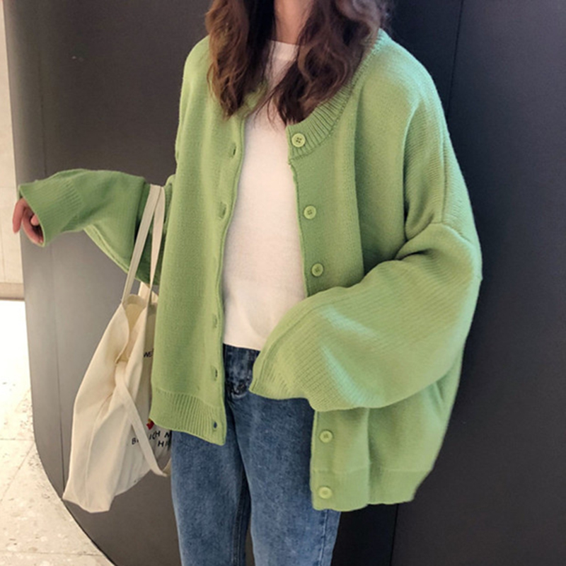 慵懶風毛衣女2018秋裝新款純色寬松針織開衫學生清新長袖外套上衣