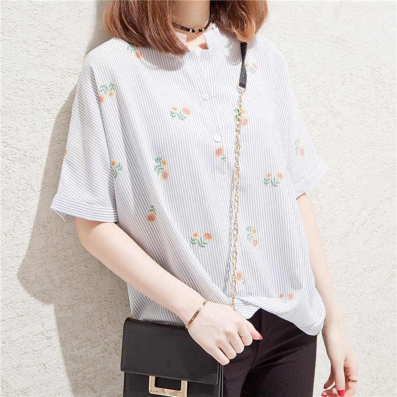 / 夏裝新款女裝港味條紋襯衫女短袖甜美chic上衣小清新韓范寬松
