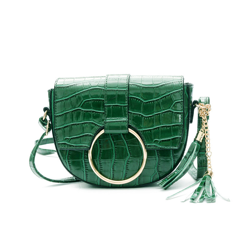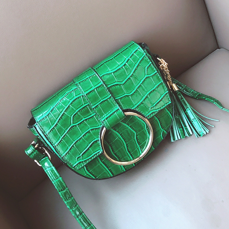 / 包包女新款潮鱷魚紋單肩女包漆皮流蘇小包韓版百搭斜挎圓環包