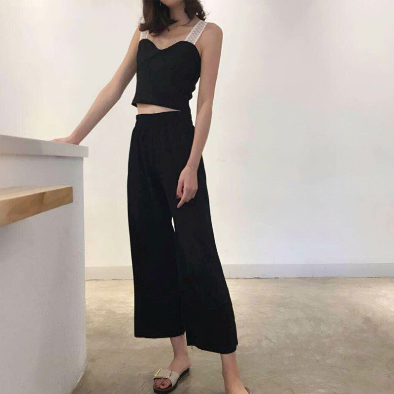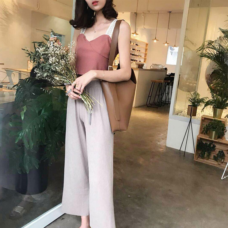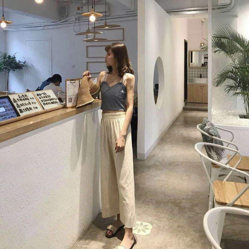 / 褲子女2018新款韓版純色寬松高腰顯瘦闊腿休閑褲時尚百搭九分褲子