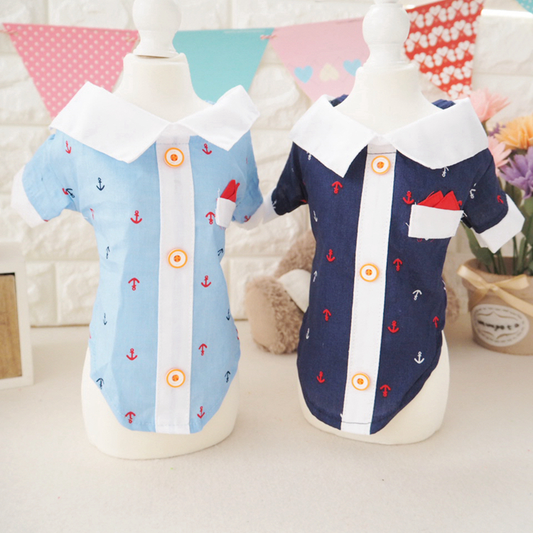 錨印花襯衫寵物泰迪狗狗衣服春夏款貴賓犬貓咪服裝公狗
