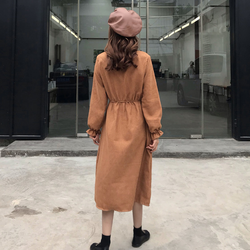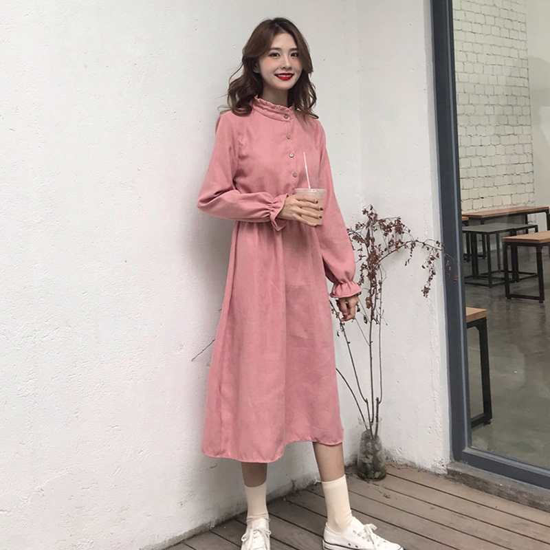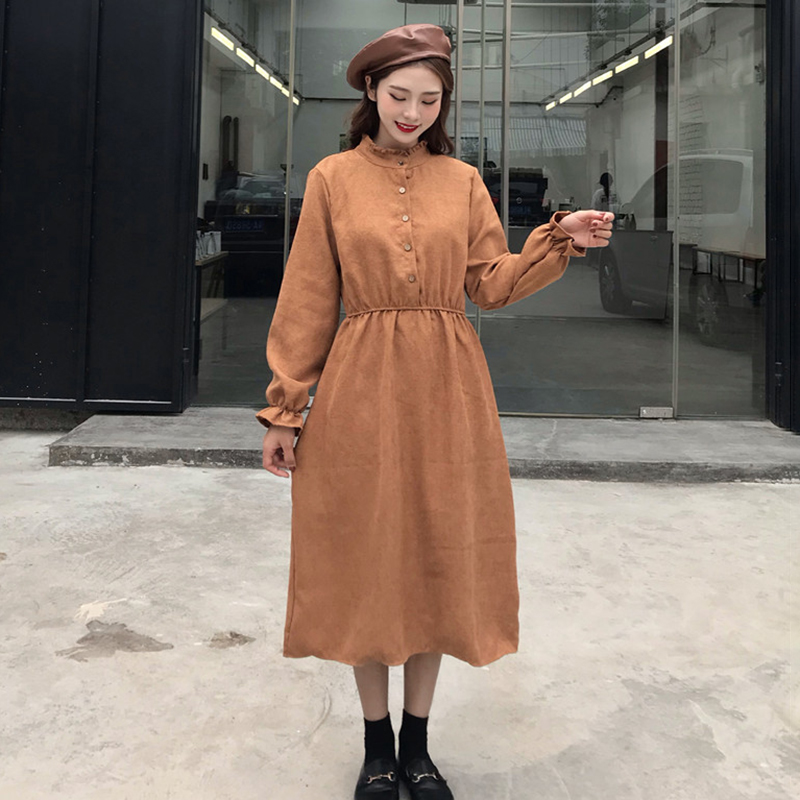 / 秋冬裝2018新款港味復古燈芯絨法式少女A字連衣裙氣質egg桔梗裙子